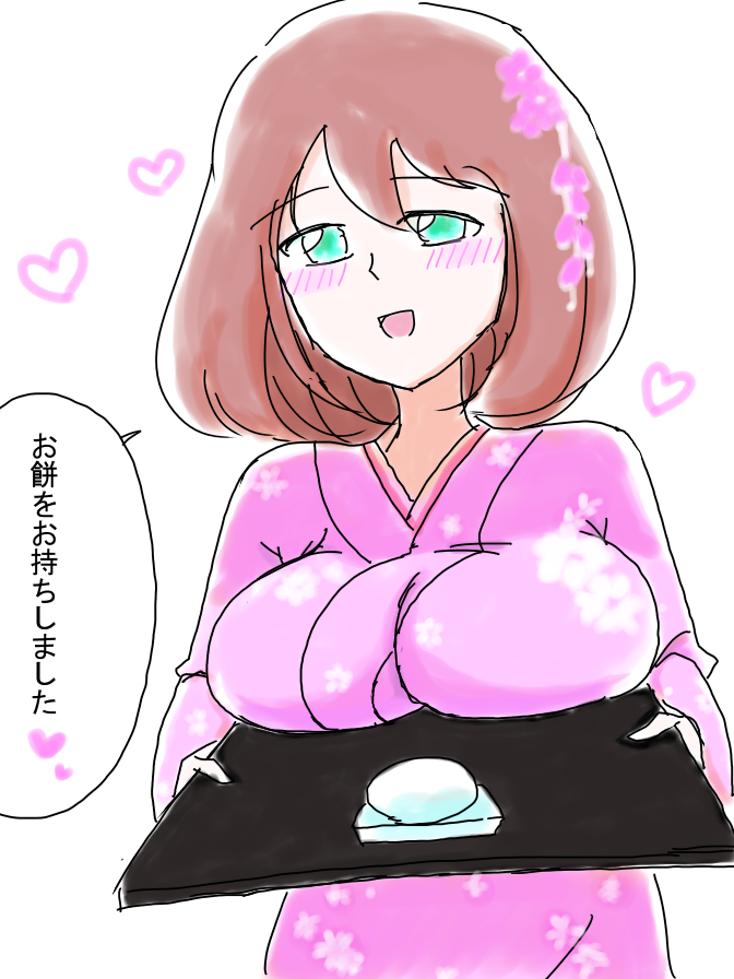 うお~さんより頂いた2025年度の年賀絵で、ダジャレを言いながらゼロに餅を持ってきた着物アイリスです。