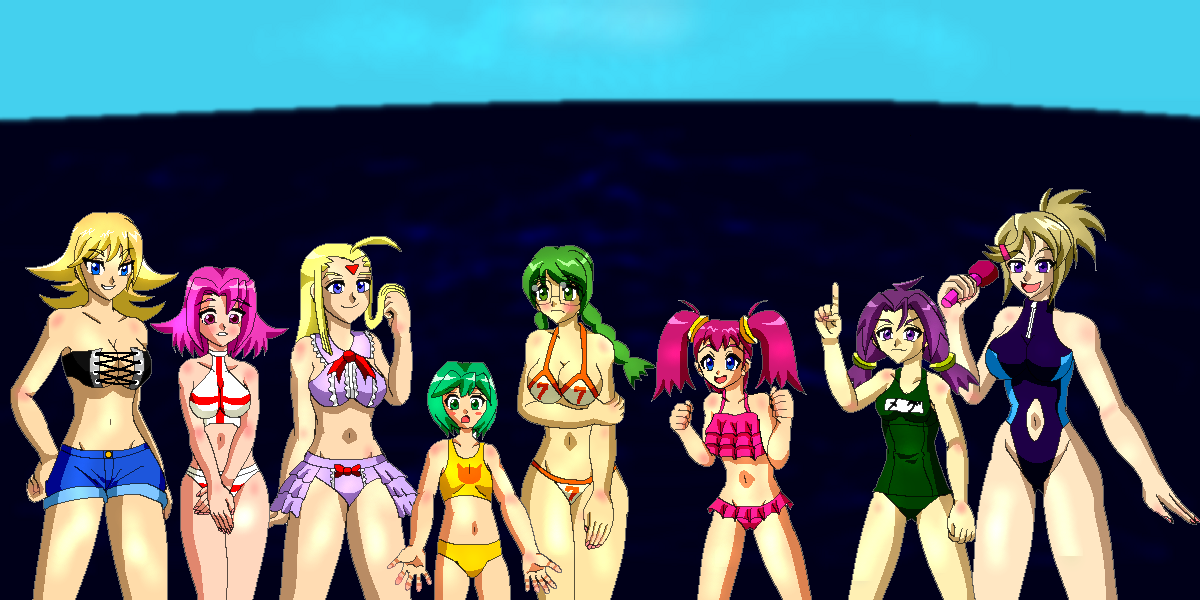 ZXAの女性ハンターたちで左からティナ、謎の人物、エレナ、マリー、ナナ、シャロン、メグ、カーリーです。